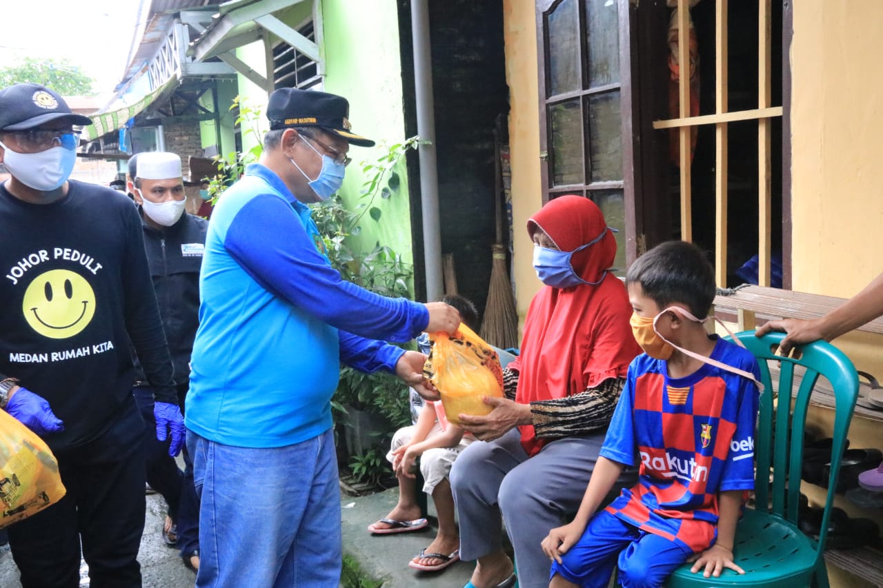 Ungkapan terima kasih dan apresiasi tersebut disampaikan Akhyar saat membagikan langsung 200 paket bahan pokok kepada warga yang berada di Jalan Brigjen Zein Hamid Gang Sado Ujung Lingkungan 8, Lingkungan 9 dan Lingkungan 10 Kelurahan Titi Kuning Kecamatan Medan Johor, Minggu (10/5) pagi.