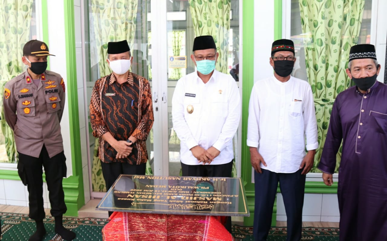 MEDAN I bongkarnews.com- Dengan mengikuti protokol kesehatan yang telah ditetapkan pemerintah, Pelaksana tugas (Plt) Wali Kota Medan Ir H Akhyar Nasution MSi meresmikan Masjid Al Ihsan Jalan Pancing II, Kelurahan Indra Kasih, Kecamatan Medan Tembung, Jumat (18/6).