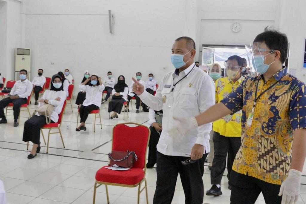 MEDAN I bongkarnews.com- Pelaksana tugas (Plt) Wali Kota Medan Ir H Akhyar Nasution MSi meninjau pelaksanaan ujian Seleksi Kompetensi Bidang (SKB) CPNS di Kantor Regional (Kanreg) VI Badan Kepegawaian Negara (BKN) Medan, Jalan TB Simatupang, Kecamatan Medan Sunggal, Jumat (11/9). Peninjauan dilakukan untuk mengecek seluruh kesiapan, termasuk penerapan protokol kesehatan di tengah kondisi pandemi Corona Virus Disease 2019 (Covid-19) yang masih melanda.