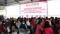 SIMALUNGUN I bongkarnews.com – Pelasanaan kegiatan akselerasi vaksinasi lansia dan anak usia 6 – 11 tahun Kabupaten Simalungun secara serentak dilaksanakan diseluruh wilayah Indonesia guna optimalisasi vaksinasi dicek secara virtual oleh Kapolri Jendral Polisi Drs Listyo Sigit Prabowo MSi, Kamis (24/02/2022) dari GOR Biduk Kajang Kayuagung, Sumsel