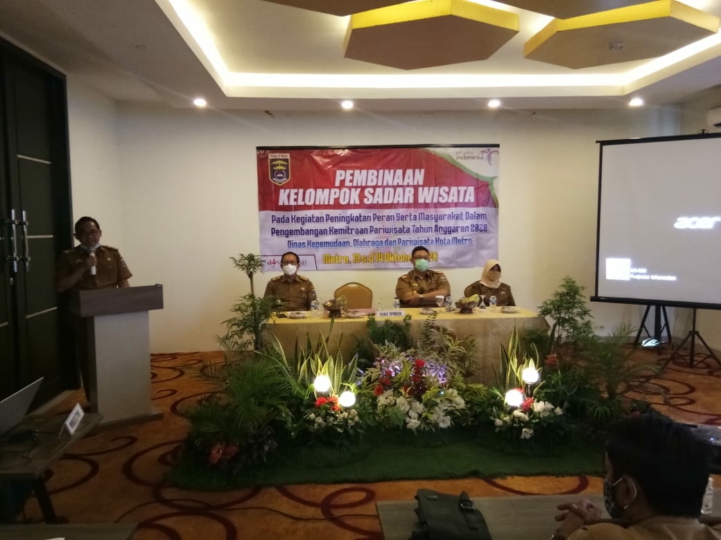 METRO I bongkarnews.com – Pemerintah Kota Metro melalui Dinas Kepemudaan Olahraga dan Pariwisata melaksanakan pembinaan Kelompok Sadar Wisata (Pokdarwis) di aula Hotel Aidea Grande Indonesia, Selasa(13/10/2020).