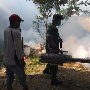 Cegah Demam Berdarah, Koramil 23/LT Foging Rumah Warga
