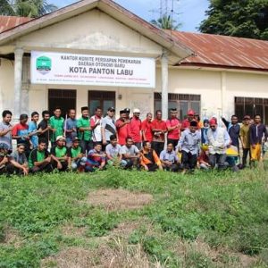 Masyarakat Gotong Royong Bersihkan Kantor PU Baktiya Sebagai Kantor Komite DOB Kota Pantonlabu