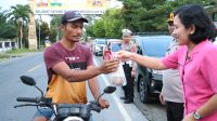 Polri Peduli Kapolres Bersama Ketua Bhayangkari Simalungun Bagi-bagi Takjil Pada Pengendara