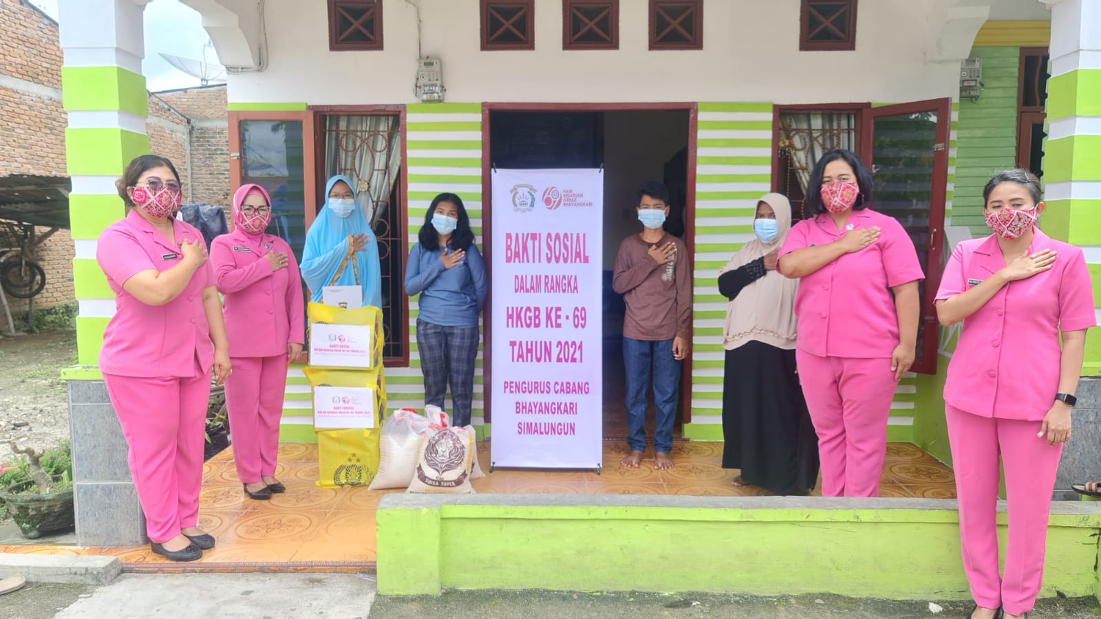 SIMALUNGUN I bongkarnews.com-Dalam rangka menyambut Hari Kesatuan Gerak Bhayangkari (HKGB) Ke 69 Tahun 2021, Pengurus Cabang (PC) Bhayangkari Simalungun menggelar kegiatan bakti sosial (Baksos), Rabu (25/8/2021) pagi sekira pukul 10.00 Wib.