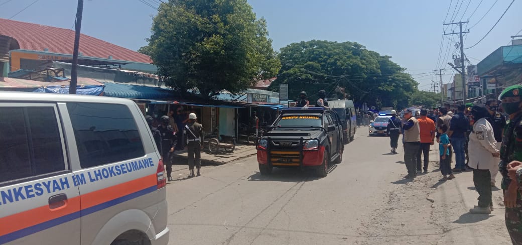Setelah melaksanakan apel gabungan di Polres Lhokseumawe bersama TNI/Polri, personil Batalyon B Pelopor yang dipimpin langsung Komandan Batalyon B Pelopor AKBP Ahmad Yani langsung menempati area pengamanan yang telah di tentukan.