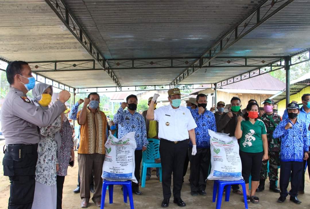 DAIRI | bongkarnews.com – Bupati Dairi Eddy Kelleng Ate Berutu membagikan bantuan pupuk organik tanaman kelapa genjah varietas pandan wangi kepada kelompok tani yang ada di Desa Kentara dan Desa Sempung Polling, Kecamatan Lae Parira pada Jumat (17/7/2020).