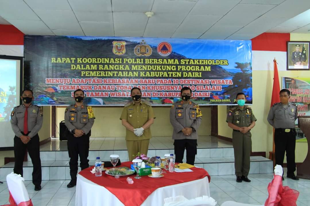 Rapat koordinasi ini diadakan dalam rangka menuju adaptasi kebiasaan baru pada 10 destinasi wisata termasuk danau toba khususnya Tao Silalahi dan Taman Wisata Iman Sitinjo di Kabupaten Dairi.