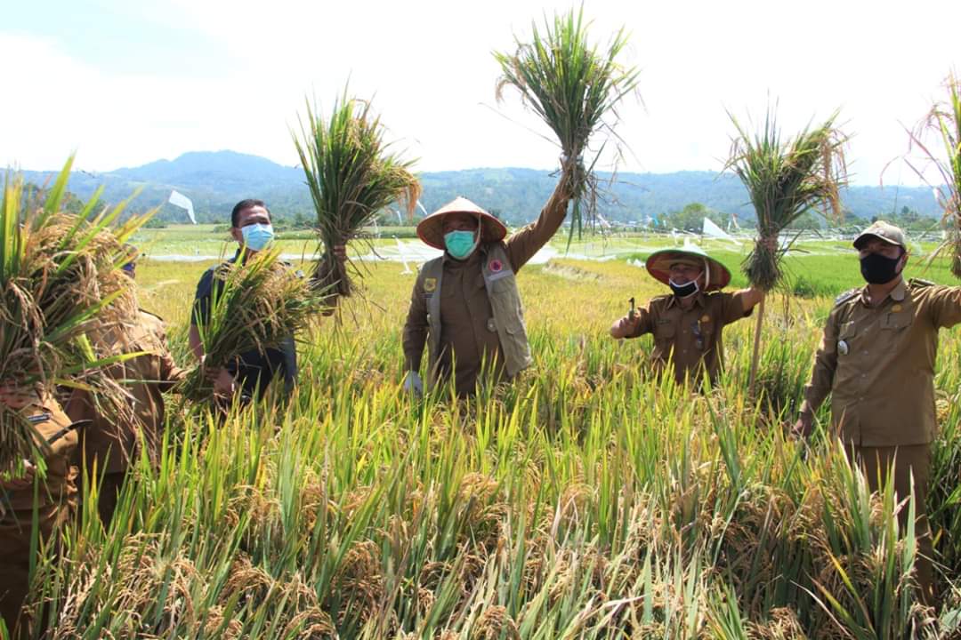 DAIRI | bongkarnews.com – Bupati Dairi Eddy Keleng Ate Berutu mengikuti panen raya di demplot padi varietas Inpari 32 yang dilaksanakan di Desa Lumbantoruan Kecamatan Lae Parira, pada Senin (20/7/2020).