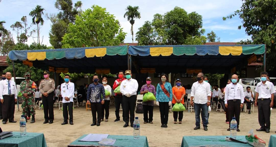 DAIRI | bongkarnews.com – Bupati Dairi Eddy Keleng Ate Berutu didampingi ketua PKK kabupaten Dairi Romy Mariani Simarmata bersama Anggota DPRD Kabupaten Dairi Partai Nasdem Nasib Marudur Sihombing dan Residen Damanik dari Partai Gerindra kembali menyalurkan bantuan sosial sembako kepada warga yang terdampak akibat covid-19, khususnya bagi para guru honorer di empat kecamatan yakni Kecamatan Tigalingga, Kecamatan Gunung Sitember, Kecamatan Tanah Pinem serta Kecamatan Siempat Nempu Hulu, pada Rabu (24/6/2020). Penyerahan bantuan sosial sembako tersebut dilaksanakan di SMP Negeri 1 Tigalingga.