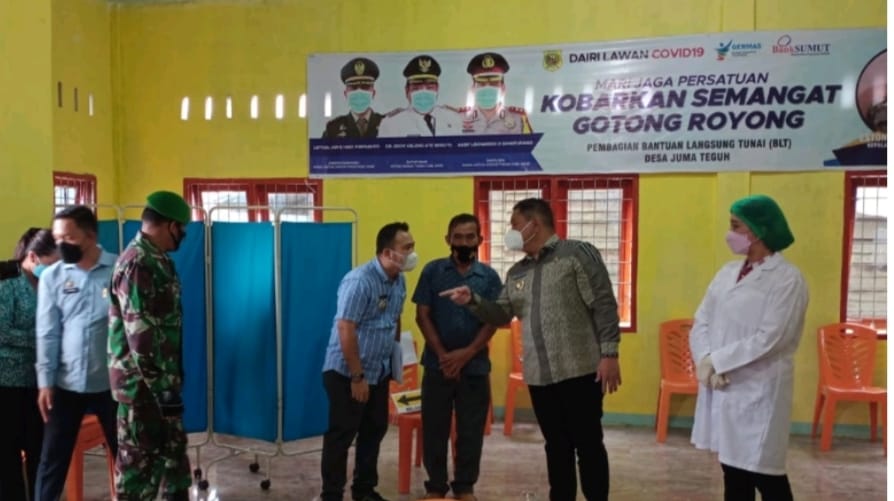 Bupati Dairi Eddy Keleng Ate Berutu meninjau langsung pelaksanaan vaksinasi Covid-19. Vaksinasi mengutamakan para lansia yang merupakan kelompok rentan tertular Covid-19.