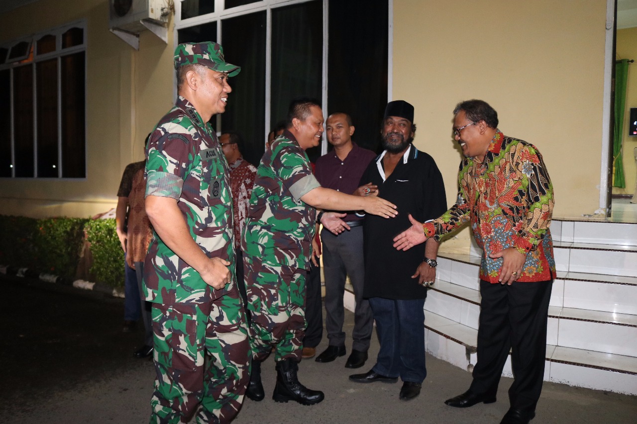 LHOKSEUMAWE | BN – Komandan Korem (Danrem) 011/Lilawangsa Kolonel Inf Agus Firman Yusmono didampingi Ketua Persit Kartika Chandra Kirana Koorcab Rem 011 Ny Marini Agus Firman Yusmono bersama unsur Forkopimda Aceh Utara dan Kota Lhokseumawe menyambut kehadiran Panglima Kodam Iskandar Muda (Pangdam IM) Mayjen TNI Moch. Fachrudin didampingi Ketua Persit Kartika Chandra Kirana Pengurus Daerah IM Ny Shanti Moch. Fachrudin beserta rombongan di Makorem 011/Lilawangsa, Jl. Iskandar Muda, Kecamatan Banda Sakti, Kota Lhokseumawe, Rabu (25/10) malam.