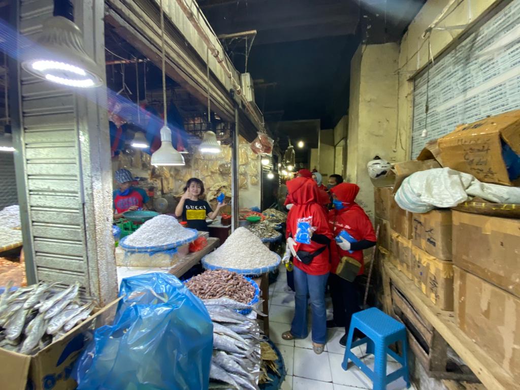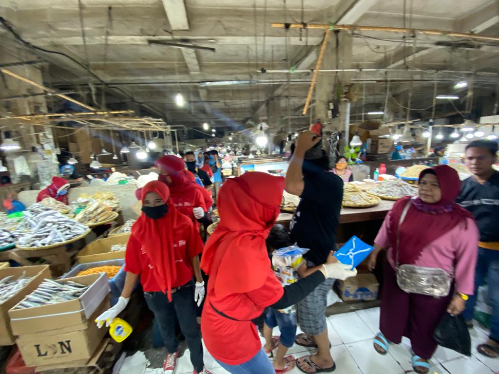 Selain pemberian masker dan sarung tangan, kolaborasi para relawan Hj Fitriani juga memberikan himbauan agar masyarakat khususnya pedagang pasar untuk tetap menjaga kondisi tubuh tetap sehat, mengatur jarak aman dan meminimalisir peredaran virus corona yang saat ini mewabah.