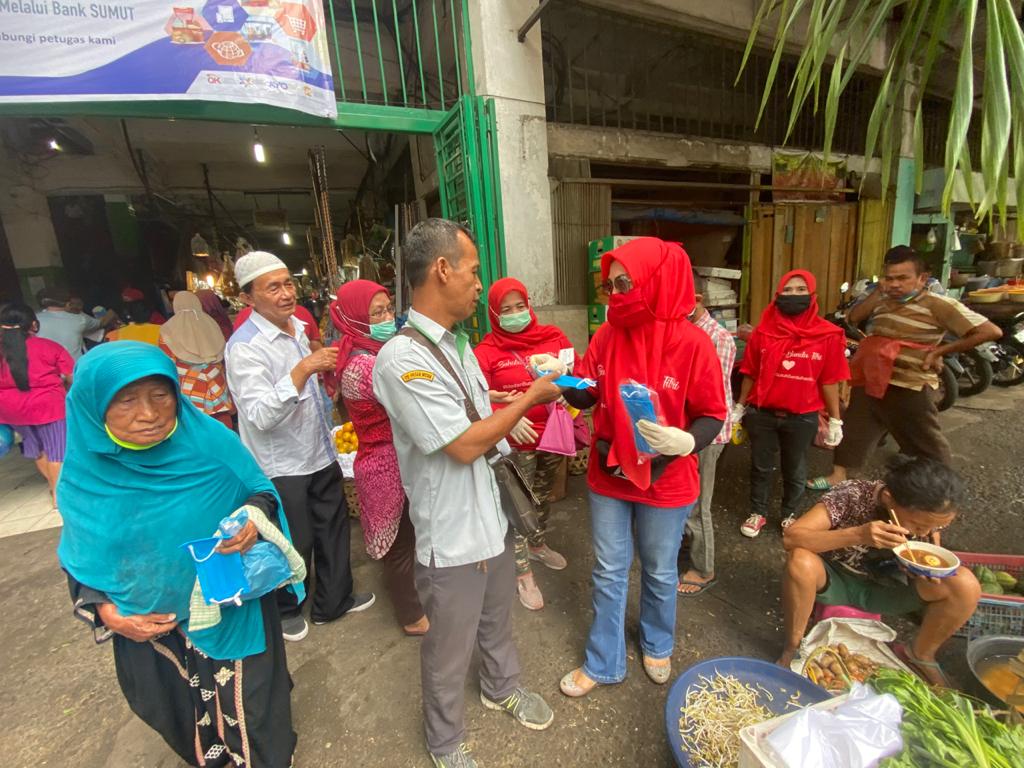 MEDAN | bongkarnews.com – Tak henti-hentinya Hj Fitriani Manurung SPd MPd menjalankan aksi kemanusiaan terkait pandemi Covid-19. Siang ini, Selasa (14/04/2020) rombongan Hj Fitriani manurung membagikan 1000 masker dan 300 sarung tangan kepada pedagang di pusat pasar tradisional atau pasar sentral.