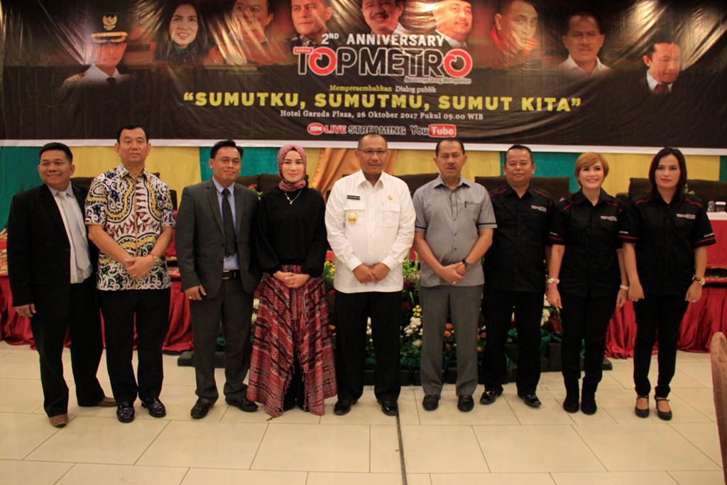 Dialog yang dilaksanakan dalam rangkaian HUT Harian TOP Metro Medan yang ke-2 ini menghadirkan sejumlah Tokoh-Tokoh yang selama ini dianggap peduli terhadap perkembangan Sumatera Utara.