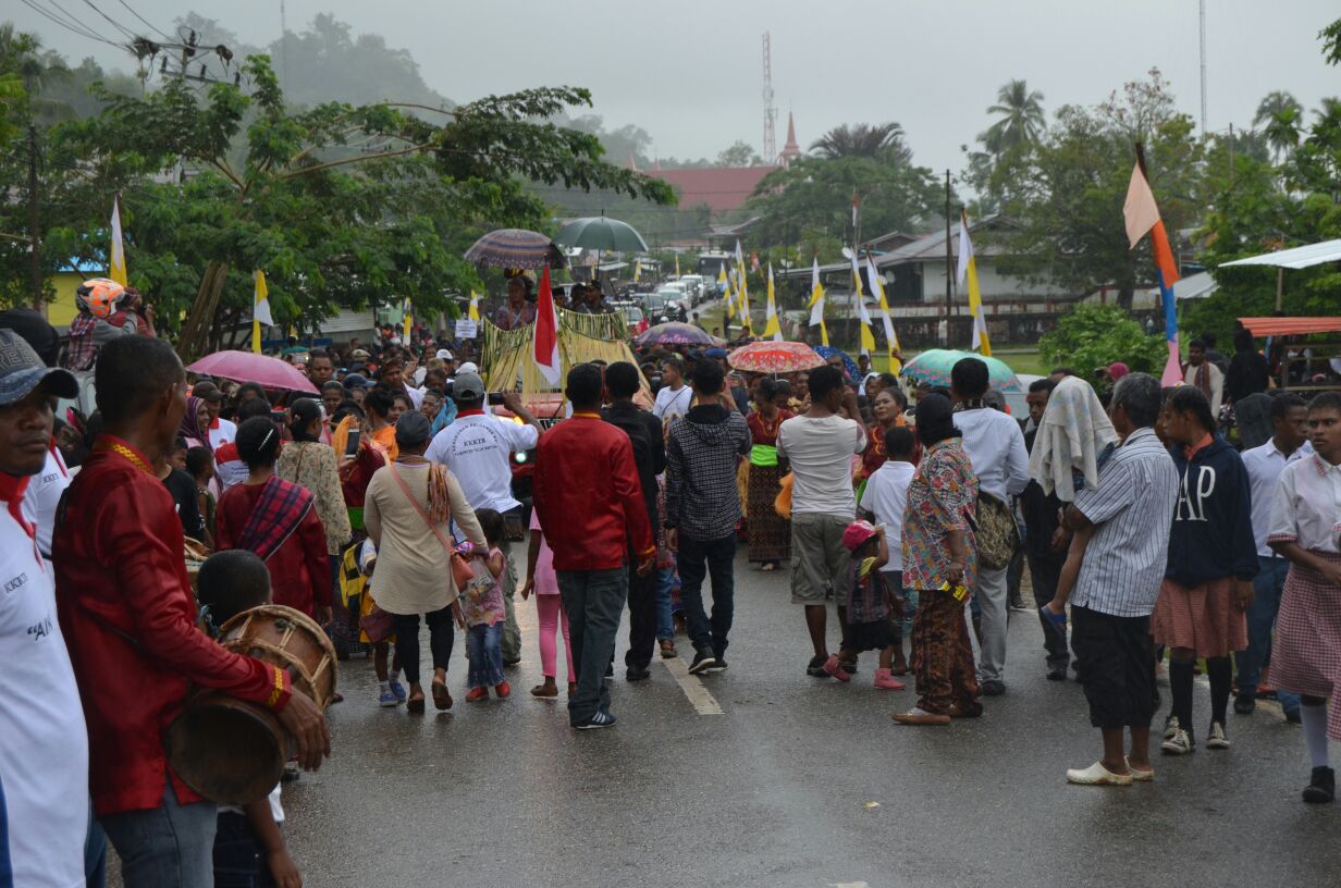 Kedatangan Mgr Datus Hilarion Lega beserta rombongan dalam rangka Meresmikan Gedung Gereja St Yohanes disambut langsung oleh Bupati Teluk Bintuni Ir Petrus Kasihiw didampingi Sekjen LMA Tujuh Suku Dr H Djamaludin Iribaram beserta unsur Forkopimda Teluk Bintuni dan juga ratusan umat paroki St Yohanes yang begitu antusias menyambut uskup meski rela berbasah – basahan dibawah guyuran hujan.