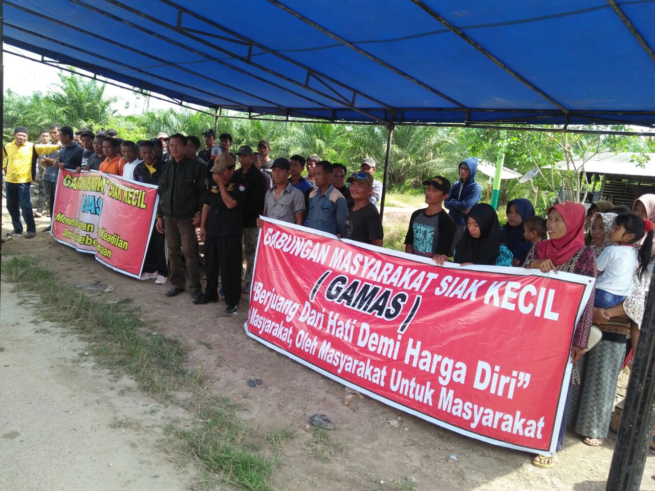 Bengkalis-(BN)-Ratusan warga GAMAS (Gabungan Masyarakat Siak Kecil)adakan aksi damai hari ini senin, (26/03) di simpang lima desa Koto Raja, Kecamatan Siak Kecil, Kabupaten Bengkalis, Riau, adapun tema aksi, “berjuang dari hati demi harga diri dari masyarakat oleh masyarakat untuk masyarakat,serta menuntut kepedulian dan keadilan demi sebuah kebersamaan”. Aksi damai ini dikawal personil anggota Polsek Siak Kecil, anggota Polsek Sabak Auh, anggota Polres Siak, serta Satpol PP Siak Kecil. Dalam orasinya, ketua Korlap, Heri, melalui pengeras suara, menyatakan, sejak masuknya perusahaan asing (Caltex) pada tahun 1977, yang lalu, hingga terjadinya perubahan pengelolaan sumur minyak dari PT.Caltex, ke PT.BOB, belum mencerminkan niat yang baik terhadap kontribusi dan rasa kepedulian perusahaan untuk masyarakat setempat, untuk itu kami masyarakat mengiginkan PT.BOB mendengar dan menyerap aspirasi ini mengingat ini merupakan kebetuhan orang banyak, ujar, korlap.