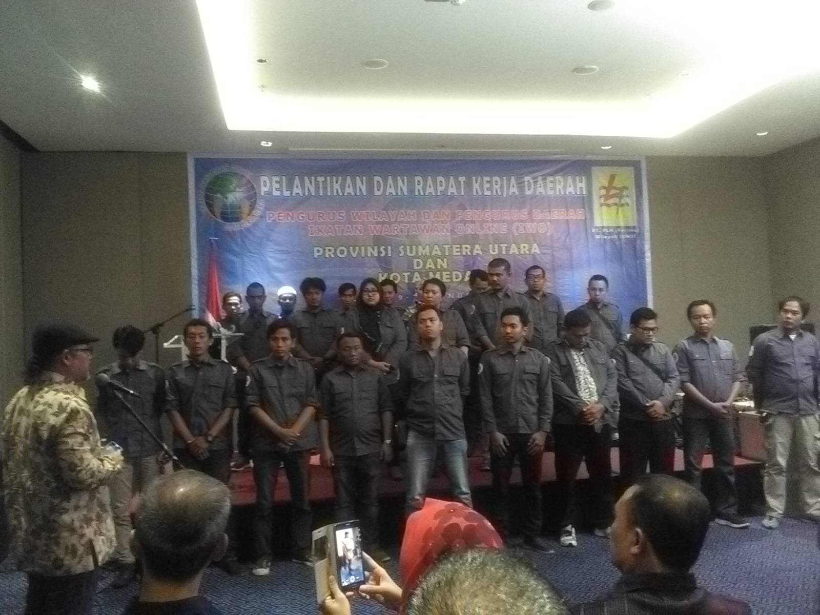 Medan,BN- Bertempat di Hotel Grandhika Medan, Jalan Setia Budi, Kecamatan Medan Selayang, Kota Medan, Jumat (19/1) malam, Pengurus Wilayah Ikatan Wartawan Online (PW IWO) Sumatera Utara dan Pengurus Daerah (PD) Kota Medan periode 2018-2013 resmi dilantik oleh Pengurus Pusat (PP) IWO, yang dilantik langsung Jodhi Yudono selaku Ketua Umum PP IWO.