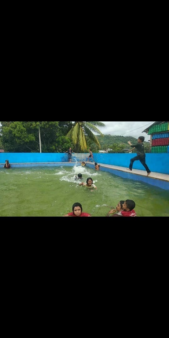Siapa sangka jejeran botol minuman mineral bekas yang dicat dominan warna merah berjejer rapi yang menuju ke areal persawahan itu, tepatnya di KM jalan Bireuen-Takengon, sebenarnya adalah pintu masuk menuju kolam renang yang dikelola BUMG Gampong Juli.