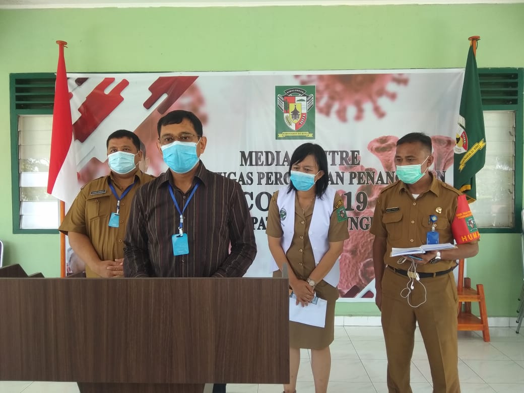 Ketua Gugus Tugas Percepatan Penanganan Corona Virus Diases (Covid-19) Kabupaten Simalungun, JR Saragih menyampaikan bertambahnya jumlah warga positif Covid-19 hasil swab didampingi Sekretaris , Mixnon Andreas Simamora, Plt Kadis Kesehatan , dr Lidya Saragih, Humas , Akmal H Siregar di Media Center Jalan Asahan kepada para wartawan, Selasa (19/5/2020).