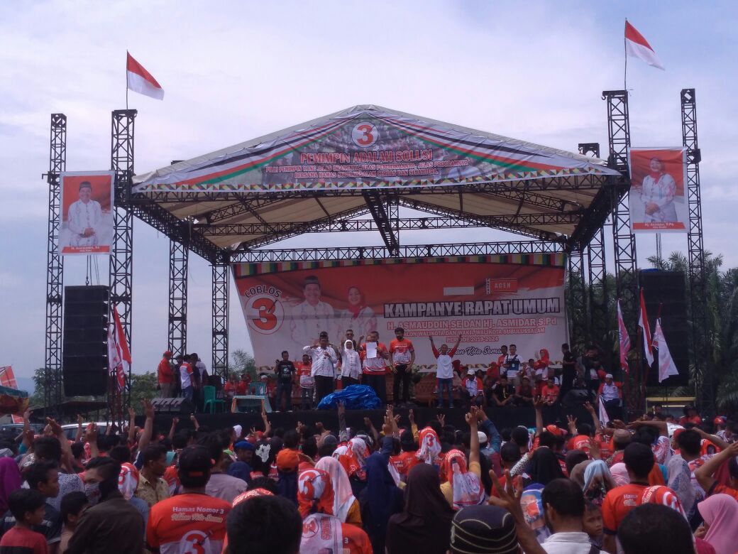 SUBULUSSALAM | Bongkarnews.com – Kampanye akbar Paslon walikota dan wakil wali kota No urut 3 (HAMAS), H Asmauddin SE dan Hj Asmidar SPd digelar di Lapangan Pegayo, Kecamatan Simpang Kiri, Kota Subulussalam pada hari Rabu 09 Mei 2018.