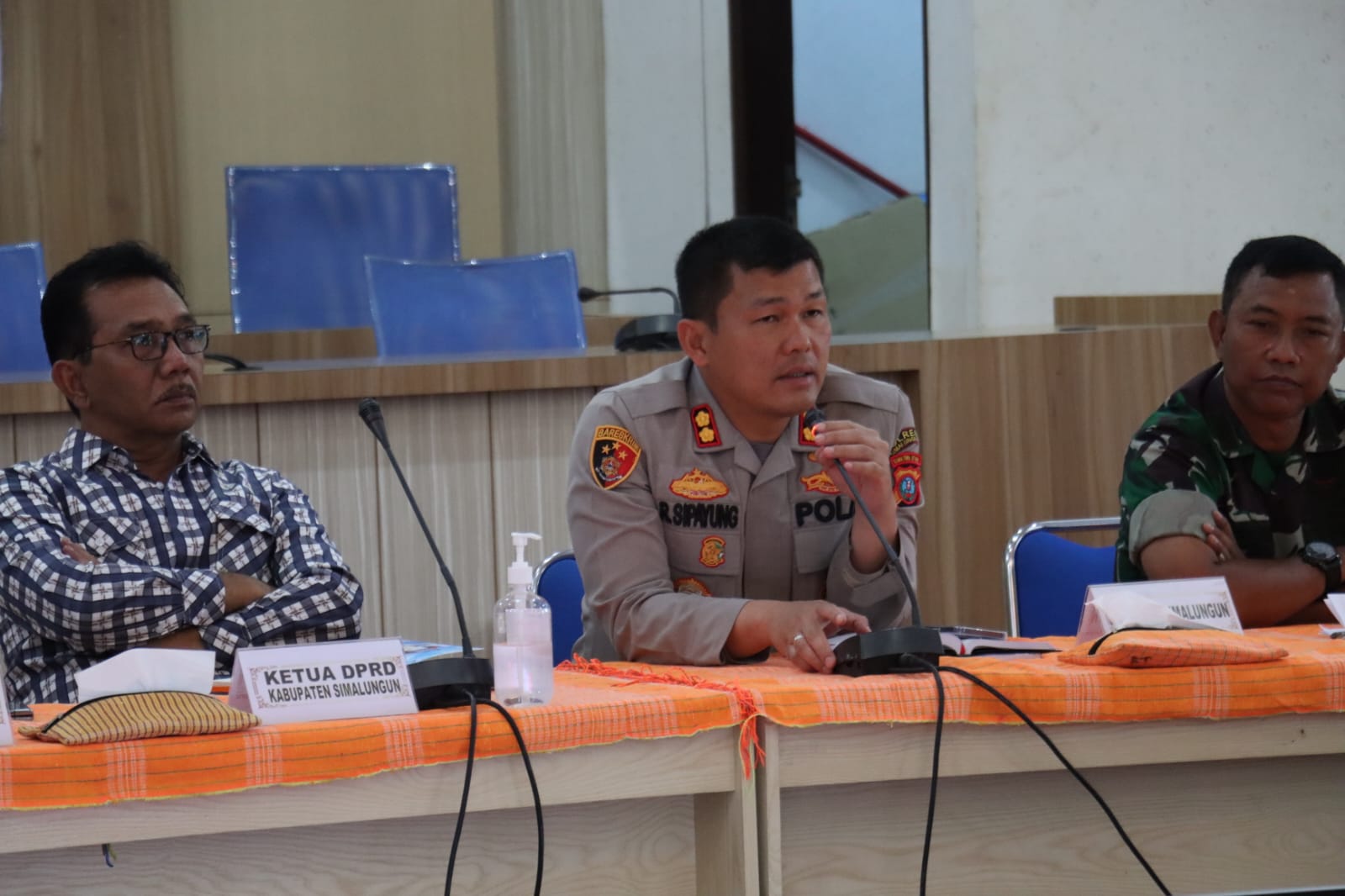 SIMALUNGUN | bongkarnews.com – Kapolres Simalungun AKBP Ronald F.C Sipayung, S.H., S.I.K., M.H., memaparkan kesiapan personel Polres Simalungun dalam rangka pelaksanaan Operasi Ketupat Toba-2023 saat menghadiri Rapat Koordinasi Lintas Sektoral Dalam Rangka Kesiapan Pengamanan Perayaan Hari Raya Idul Fitri 1444 H / 2023 M guna Cipta Kondisi Yang Aman dan Kondusif Di Wilayah Kabupaten Simalungun.
