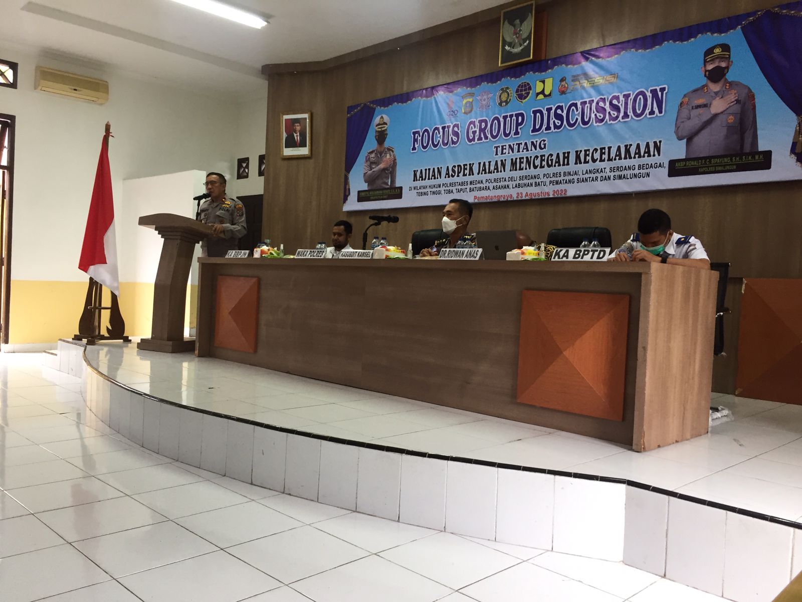 SIMALUNGUN | bongkarnews.com – Kepala Satuan Lalulintas (Kasat Lantas) Polres Simalungun AKP Hendrik F. Aritonang, SIK, MH mengikuti kegiatan Fokus Group Discussion (FGD) Kajian Aspek Jalan Mencegah Kecelakaan yang dilaksanakan di Aula Andar Siahaan Polres Simalungun Jalan Jhon Horailam Saragih Kecamatan Pematang Raya, Kabupaten Simalungun, Selasa (23/8/2022) pagi sekira pukul 09.00 Wib.