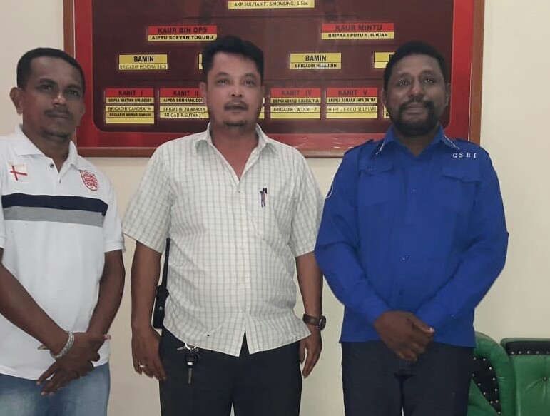 BINTUNI | bongkarnews.com – Dalam pelaksanaan peringatan Hari Buruh Internasional (May Day) di Bintuni Ketua DPD GSBI Provinsi Yohanes Akwan SH bersama Ketua DPC GSBI Kabupaten Teluk Bintuni Engelbert Nibaely menghadap Kasat Intelkam Polres Teluk Bintuni AKP J F Sihombing di ruangannya, Selasa (30/4/2019).