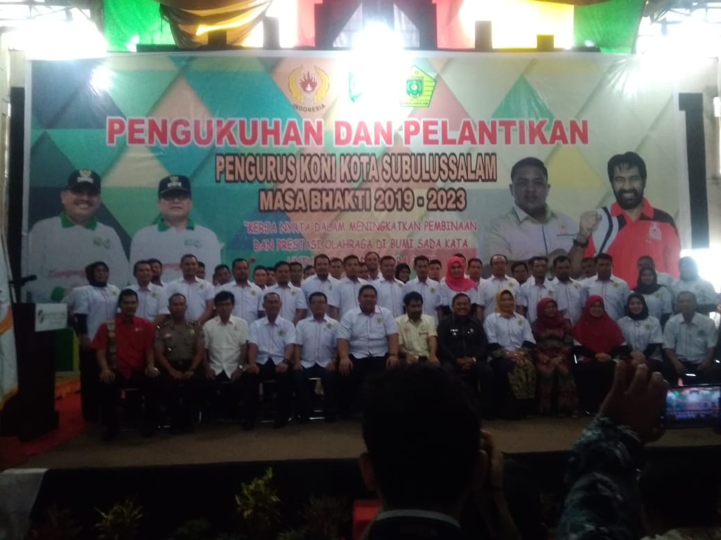 Pengukuhan tersebut dipimpin langsung oleh Ketua KONI privinsi Aceh, H Muzakir Manaf, dihadiri oleh Walikota Subulussalam H Affan Alfian Bintang SE, Wakil Walikota Subulussalam Drs Salmaza MAP, Ketua 1 DPRK Subulussalam Fajri Munte, Ketua DPRK.2 Dewita Karya AMd, Anggota DPRK lainnya, anggota DPRA Hj Asmidar SPd Dandim 0118 Subulussalam, Waka polres Subulussalam. Juga kepala Dinas Badan dan kantor kepala Sekolah tingkat SMA sederajat. Ketua Ormas juga Perpena dan undangan lainnya.