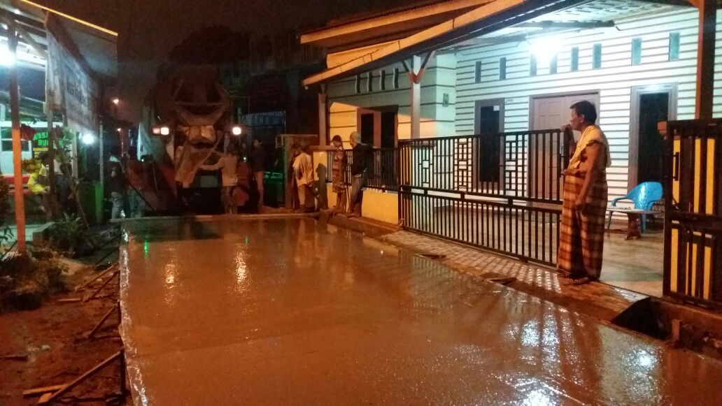 Pembetonan ketiga ruas berjalan lancar, sebab malam itu para pekerja tinggal meratakan coran yang dituangkan mobil molen. Sebab, mereka sebelumnya telah membuat mal kayu pada sisi kiri maupun kanan jalan, termasuk tikar besi untuk mengikat coran sehingga hasilnya lebih kuat dan tahan lama.