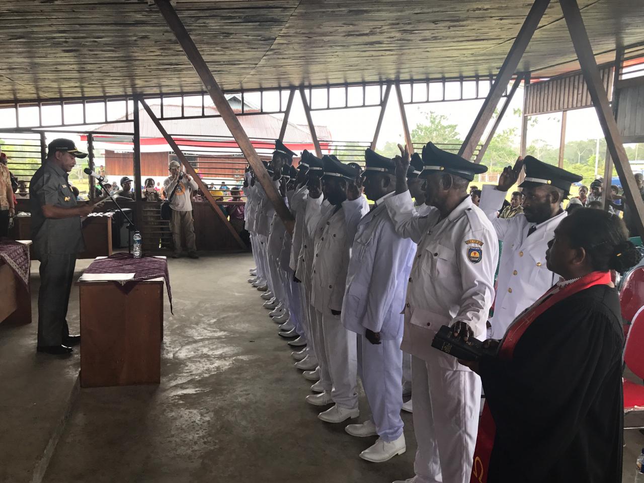 20 orang Kepala Kampung yang di lantik terdiri dari : 5 Orang Kepala Kampung Distrik Meyado dan 15 Orang Kepala Kampung Distrik Moskona Selatan.