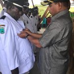 Wakil Bupati Teluk Bintuni, Matret Kokop, SH dan Sekretaris Daerah (Sekda) Teluk Bintuni Gustaf Manuputty, S.sos.MM., turut serta mendampingi Bupati pada saat pelantikan para Kepala Kampung yang dilaksanakan di Aula Kantor Distrik Meyado , Sabtu (17/11/2018).