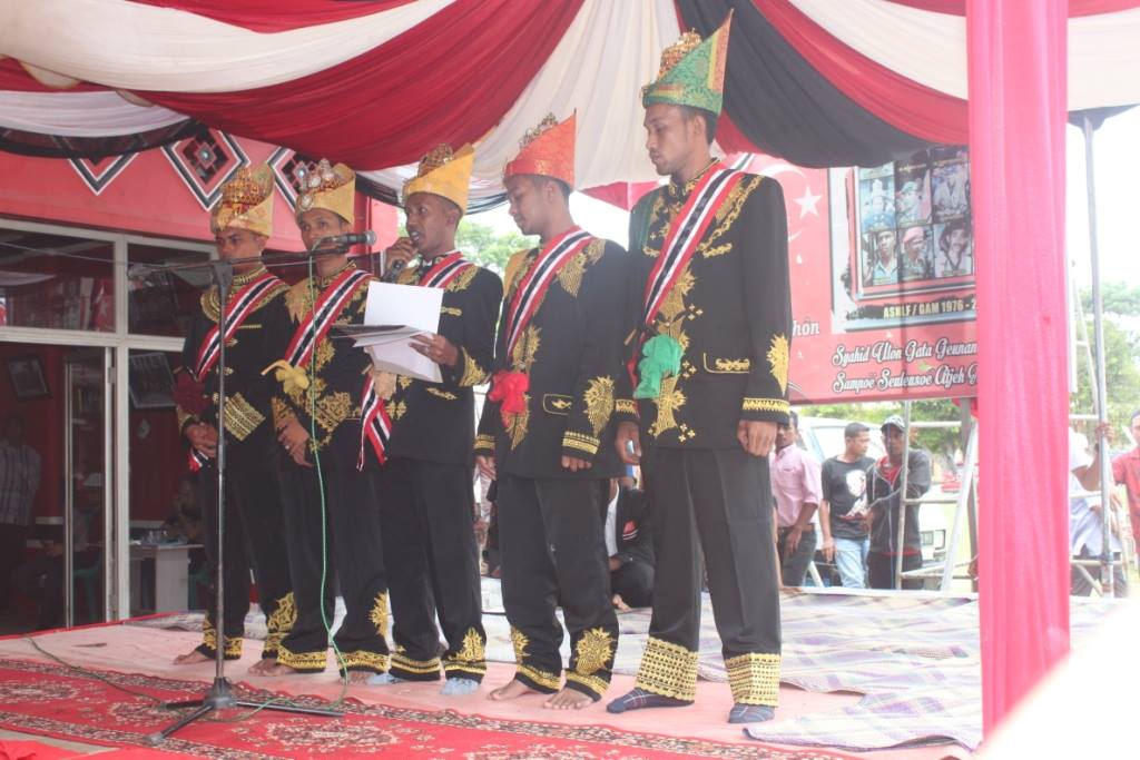 ACEH UTARA | BN – Jaringan Aneuk Syuhada Aceh JASA membacakan petisi pada acara memperingati Hari Milad ke 12 Perdamaian antara Gerakan Aceh Merdeka dengan Pemerintah Republik Indonesia yang ditanda tangani antara kedua belah pihak dalam MOU Helsinki di Finlandia pada 15 Agustus 2005 lalu, bertempat di halaman kantor Komite Peralihan Aceh (KPA) Wilayah Samudera Pase, Geudong Aceh Utara, 15 Agustus 2017.