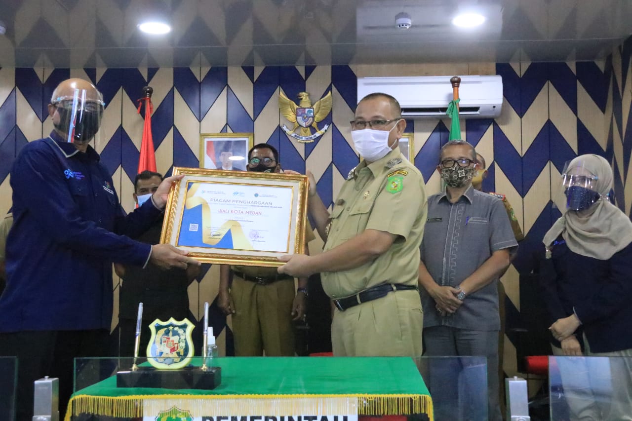 MEDAN I bongkarnews.com- Pelaksana tugas (Plt) Wali Kota Medan Ir H Akhyar Nasution MSi menerima Piagam Penghargaan dari Badan Pusat Statistik (BPS) Sumut atas capaian yang dilakukan dalam rangka mendukung suksesnya pelaksanaan Sensus Penduduk (SP) Online 2020 di Kota Medan. Penyerahan piagam dilakukan dalam Acara Pelaksanaan Kick Off SP Offline di Command Center, Balai Kota Medan, Selasa (1/9).
