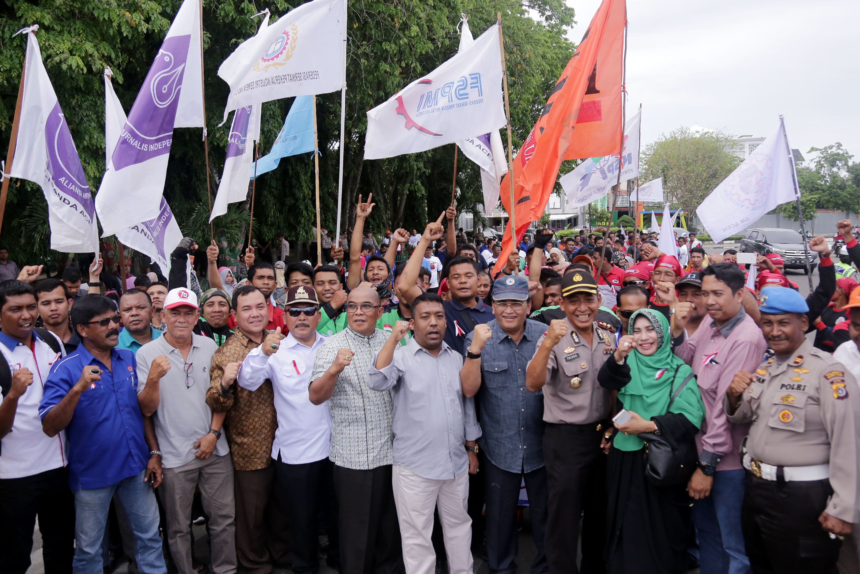 Hal ini disampaikan Kepala Dinas Ketenagakerjaan dan Mobilitas Penduduk (Disnakermobduk) Aceh, Bahagia, saat menemui para demonstran aksi Hari Buruh Internasional yang berlangsung di depan Masjid Raya Baiturrahman, Banda Aceh, Selasa (1/5/2018).