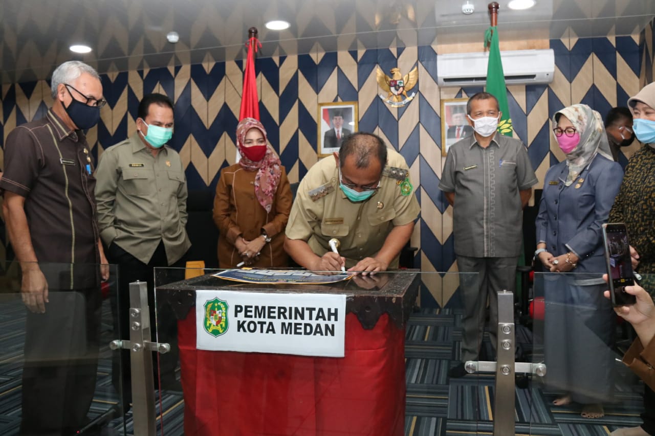 MEDAN I bongkarnews.com- Guna menekan angka kasus balita stunting di Kota Medan, Pemko Medan menggelar Rembuk Stunting secara Video Conference (Vidcon) di Command Center Kantor Wali Kota Medan Selasa (23/6). Rembuk Stunting ini merupakan aksi ke 3 dari 8 aksi konvergensi stunting yang telah ditetapkan oleh Pemerintah Pusat. Tujuannya untuk menyepakati program/kegiatan intervensi penurunan Stunting terintegrasi di Kota Medan.