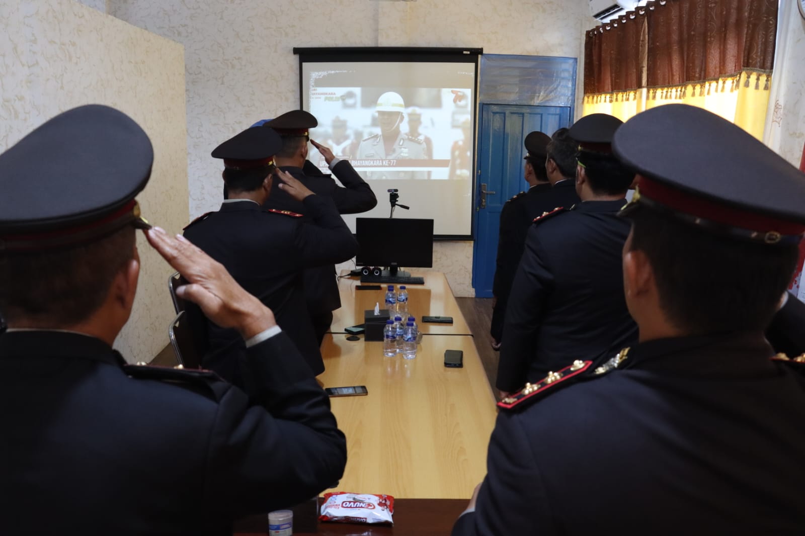 Polres Simalungun Serta Kapolres Ikut Serta dalam Upacara Peringatan Hari Bhayangkara Ke 77 Secara Virtual