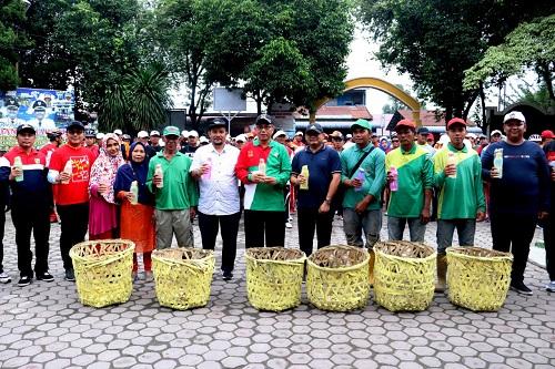 Peluncuran Gerakan Aparatur Bersepeda ini juga ditandai dengan pembagian keranjang sampah dan botol minuman kepada petugas Penanganan Prasarana Sarana Umum (PPSU) Kecamatan Medan Deli.(ft)