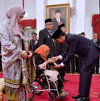Penyerahan gelar Pahlawan Nasional dalam rangka acara hari pahlawan nasional tahun 2017 itu berlangsung di Istana Negara, Jakarta, Kamis (09/11/2017).