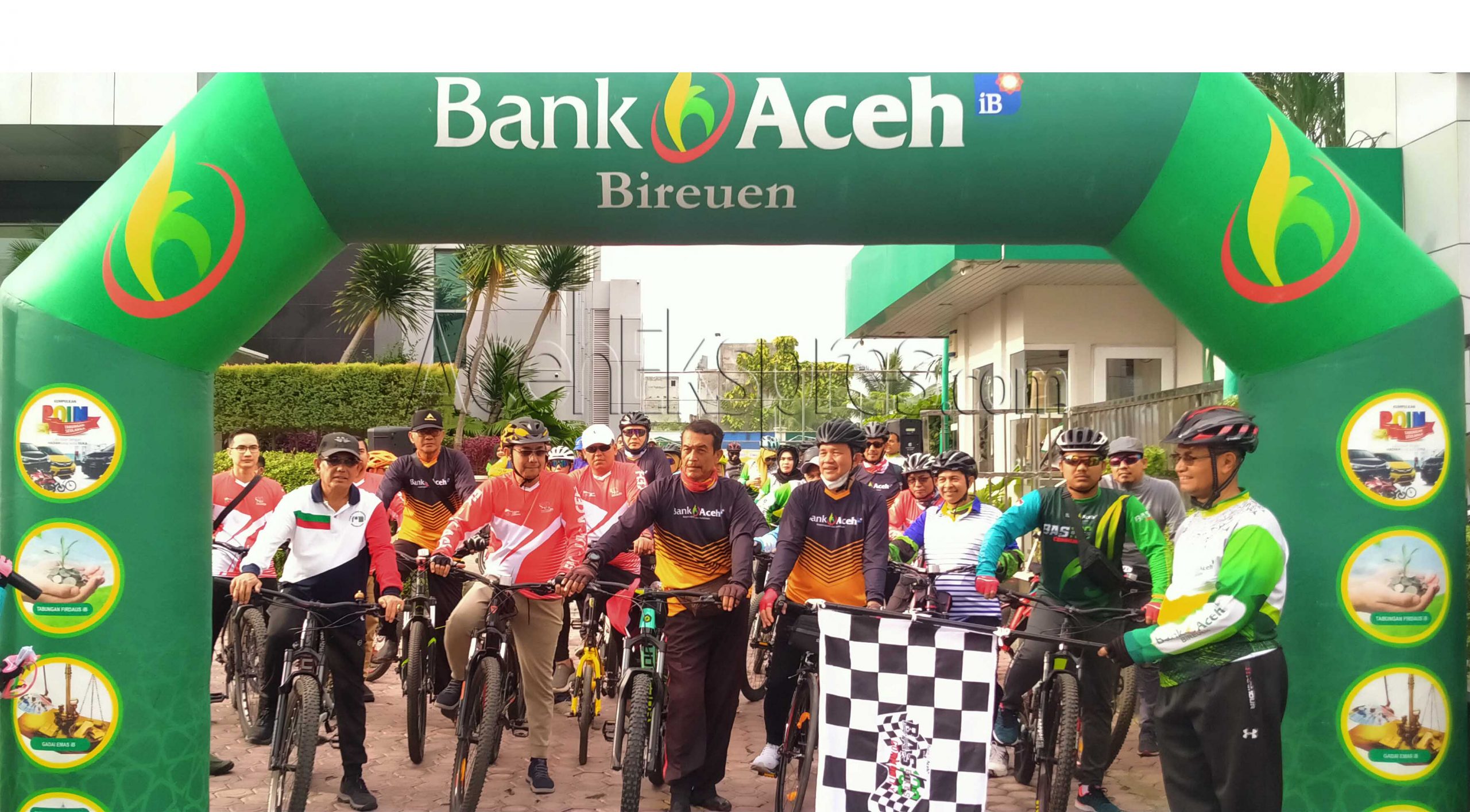 Bireueun-Direktur Utama PT Bank Aceh Syariah (BAS) Haizir Sulaiman, Kepala Otoritas Jasa Keuangan, Bupati serta pejabat terkait, gowes bersama Etape 8, start dari kantor Cabang PT BAS Bireuen dan finish di objek wisata Pantai Kuala Raja, Kecamatan Kuala, Bireuen.