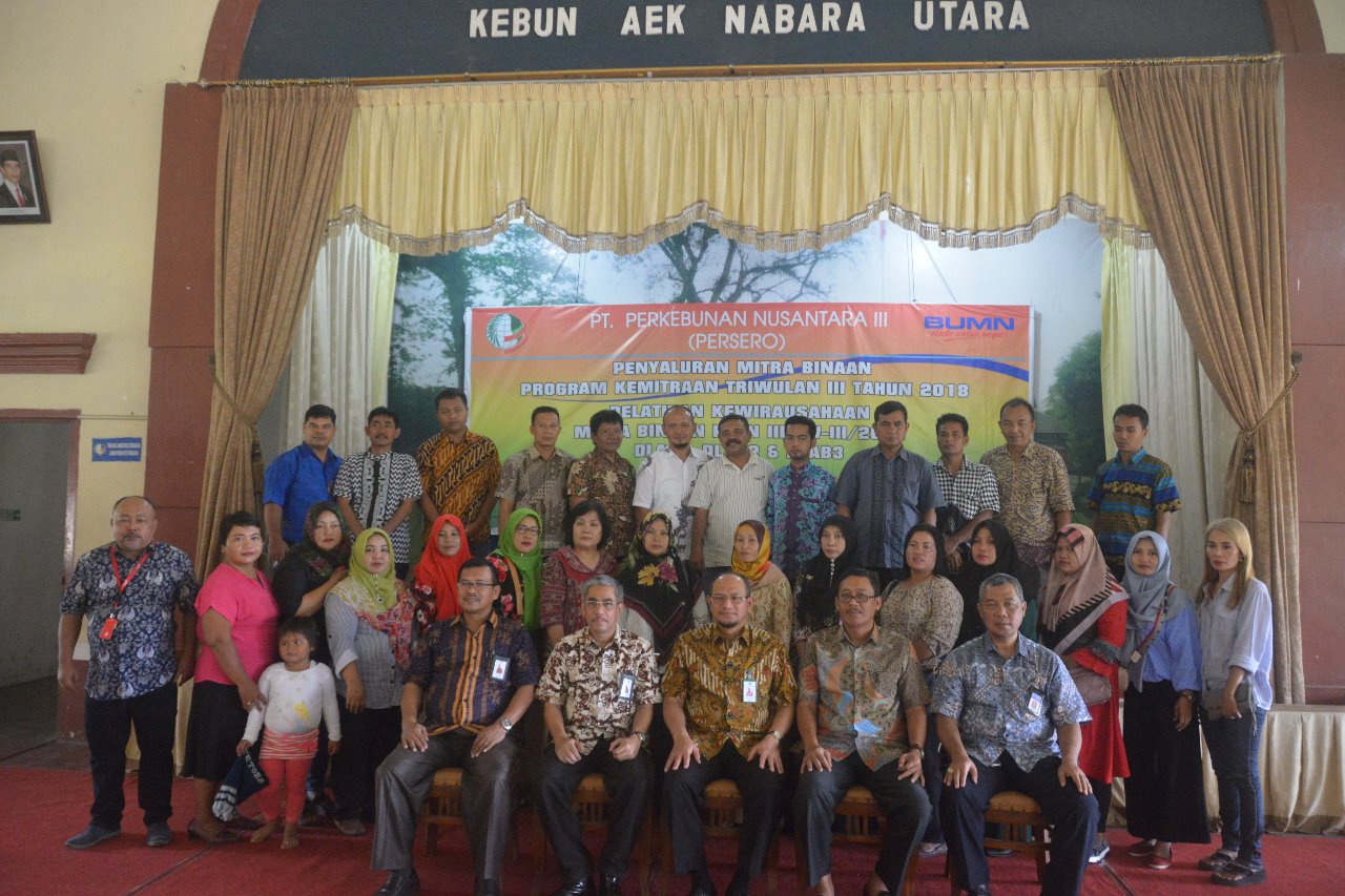AEK NABARA I Bongkarnews.com – Sebanyak 32 mitra binaan memperoleh modal usaha dari PTPN III (Persero), Kamis (18/10/2018), di aula Kebun Aek Nabara Utara, Distrik Labuhanbatu III. Penyaluran dana Mitra Binaan tersebut merupakan program Kemitraan Triwulan III Tahun 2018.