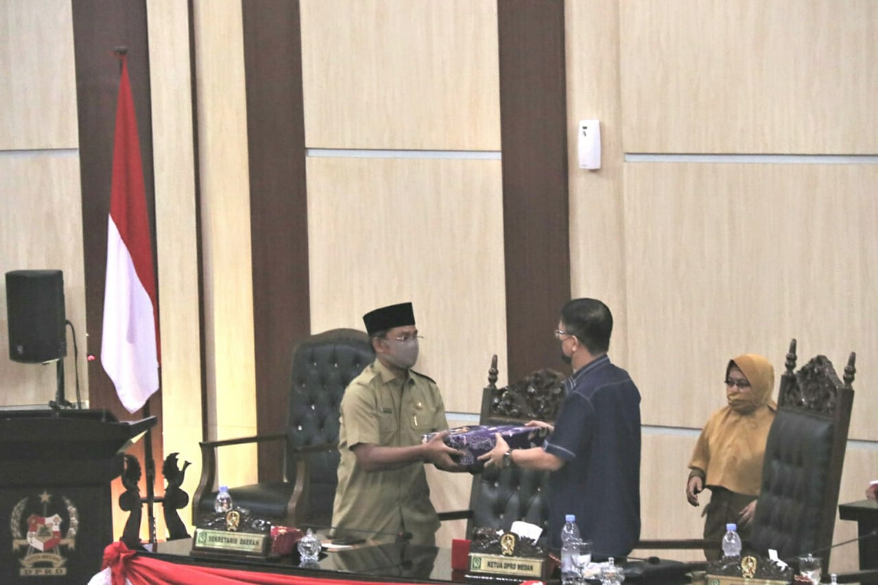 Sidang Paripurna yang dipimpin Ketua DPRD Medan Hasyim SE ini berlangsung secara tatap muka maupun melalui Video Conference (Vid Con) serta turut dihadiri Wakil Ketua DPRD Medan Ihwan Ritonga, para anggota DPRD Medan, sejumlah pimpinan OPD di lingkungan Pemko Medan. Dalam rapat paripurna ini, masing-masing Fraksi DPRD Kota Medan menyampaikan pemandangan umumnya terkait Ranperda Kota Medan tentang Pertanggungjawaban Pelaksanaan APBD Kota Medan Tahun Anggaran 2019.