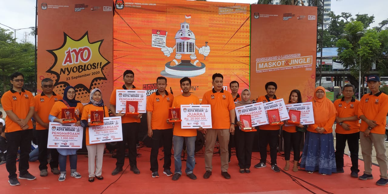 Medan I Bongkarnews. com- Sosialisasi dan launching Maskot & Jingle pemilihan Wali Kota dan Wakil Wali Kota Medan Tahun 2020 berlangsung meriah di Lapangan Merdeka Medan, Minggu (1/3).