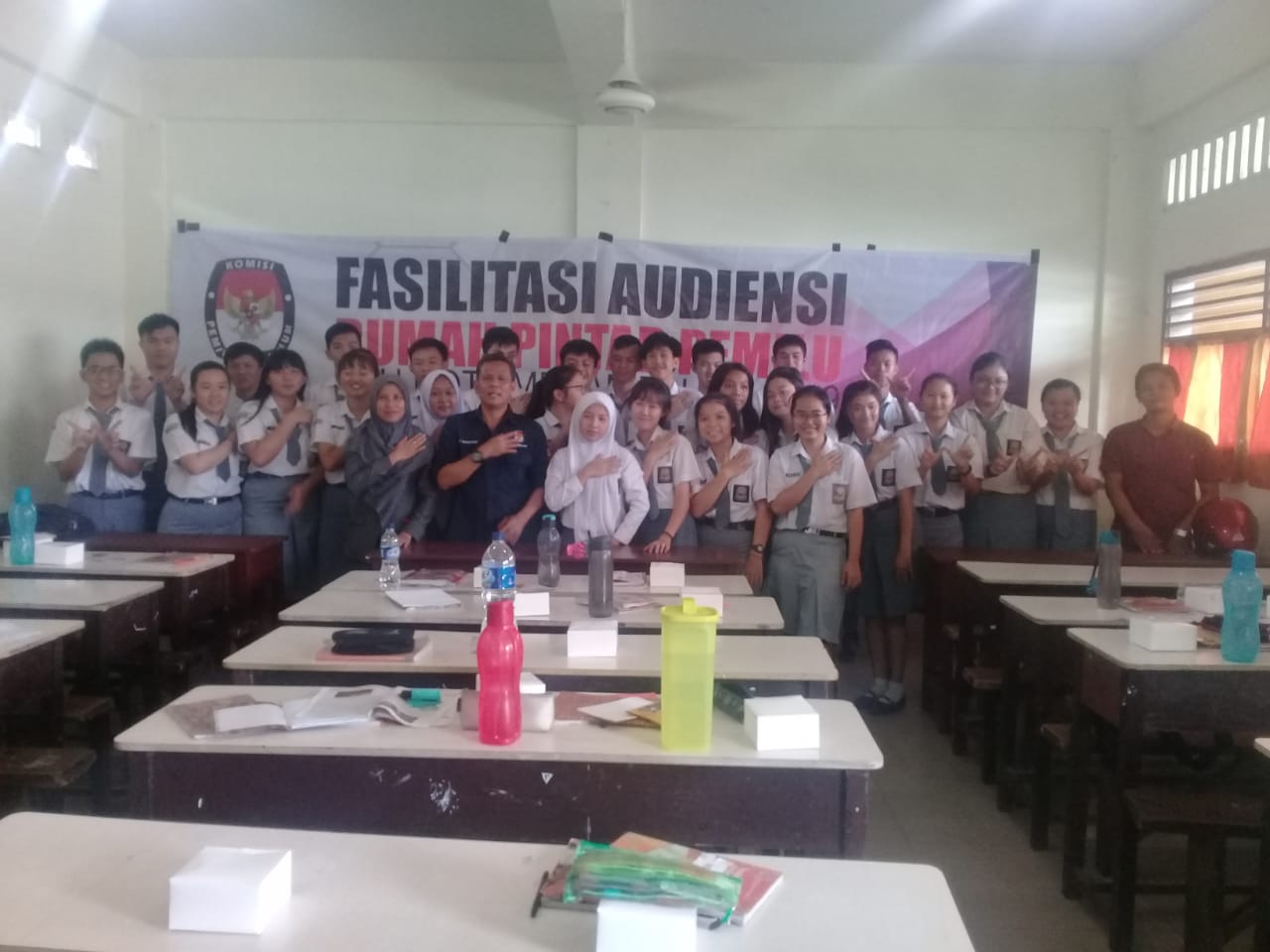 Terlihat para siswa yang umumnya apemilih pemula terlihat sangat begitu antusias mengajukan berbagai pertanyaan seputar pemilu dan demokrasi.