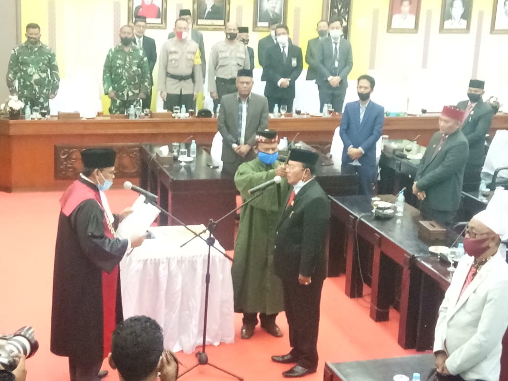 Setelah membacakan Surat Keputusan Plt Gubernur Aceh terkait peresmian dan pengangkatan, Mulyadi CH sebagai Wakil Ketua DPRK Aceh Utara oleh Sekwan Aceh Utara, Nyak Tiari.
