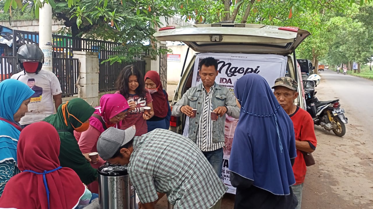METRO I bongkarnewscom – Sahabatku Hj. Ida Jaya ngopi bareng bersama ratusan masyarakat pedagang Metro Selatan dipasar Mulyojati 16c Kota Metro, Senin, (20/07/20).