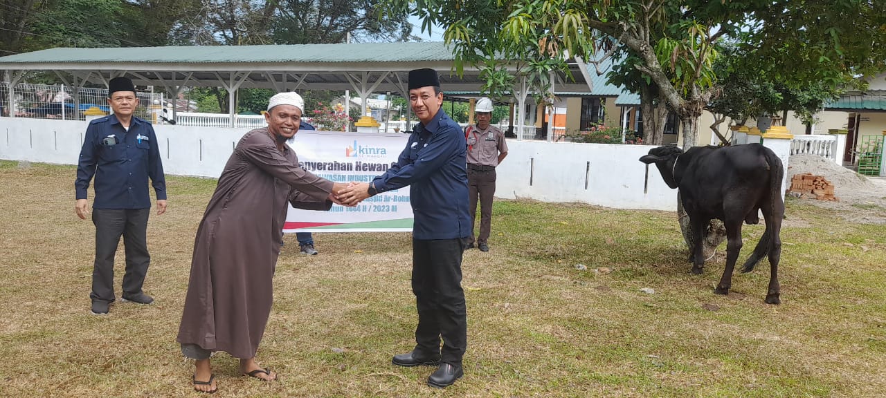Pemberian hewan qurban tersebut adalah tanda wujud hadir dan peran aktif PT Kawasan Industri Nusantara (PT KINRA) sebagai Perusahaan Pengelola Kawasan Ekonomi Khusus Sei Mangkei dalam berbagai kegiatan hari-hari besar umat beragama, kali ini khususnya bagi yang beragama Islam. PT KINRA menyerahkan bantuan hewan qurban berupa 3 (tiga) ekor sapi secara simbolis diwakili oleh Senior Executive Vice President Operation Alwin Abdi dan diterima oleh panitia qurban masjid Al-Ikhlas Perumahan PKS Sei Mangkei dan panitia qurban masjid Arrohmah Perumahan Emplasmen Sei Mangkei, Selasa (27/6/2023).