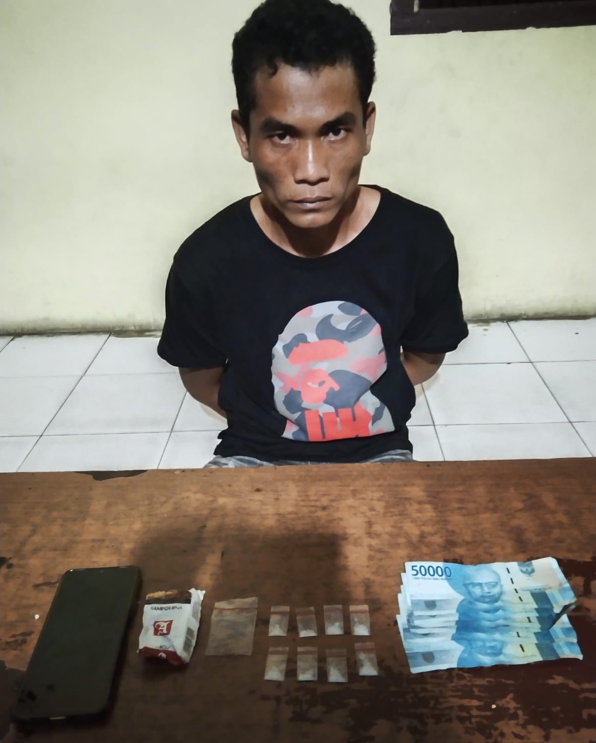 Selanjutnya dari Dika ditemukan barang bukti di kantong celananya berupa 1 bungkus kotak rokok merk Sampoerna berisi 8 bungkus plastik klip transparan berisi diduga narkotika jenis shabu berat brutto 1,34 gram, 1 bungkus kotak rokok merk Sampoerna, 1 unit HP android warna hitam merk Vivo dan Uang hasil penjualan sejumlah Rp. 300.000.