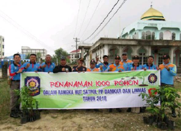 Satpol PP dan Damkar Pelalawan menggelar gerakan menanam 1000 pohon. Penanaman pohon dalam rangkaian kegiatan peringatan HUT Satpol PP ke-68, Damkar ke-99 dan Satlinmas ke-56 tingkat Kabupaten Pelalawan yang akan digelar 23 April 2018.