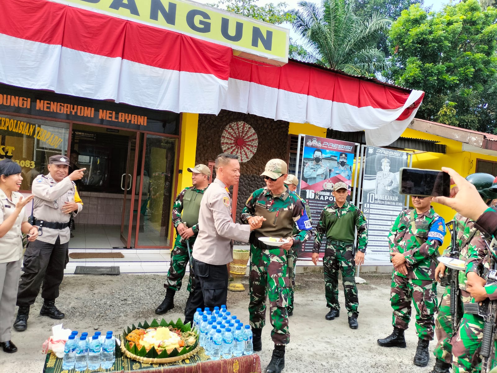 Kapolsek Bangun, AKP LS Gultom, SH., bersama personil Polsek Bangun dan Ketua Bhayangkari Polsek Bangun menyambut hangat kejutan tersebut. Mereka merasa terharu dan bersyukur atas perhatian dan surprise yang diberikan oleh personil TNI Rindam I BB pada momen penting ini.